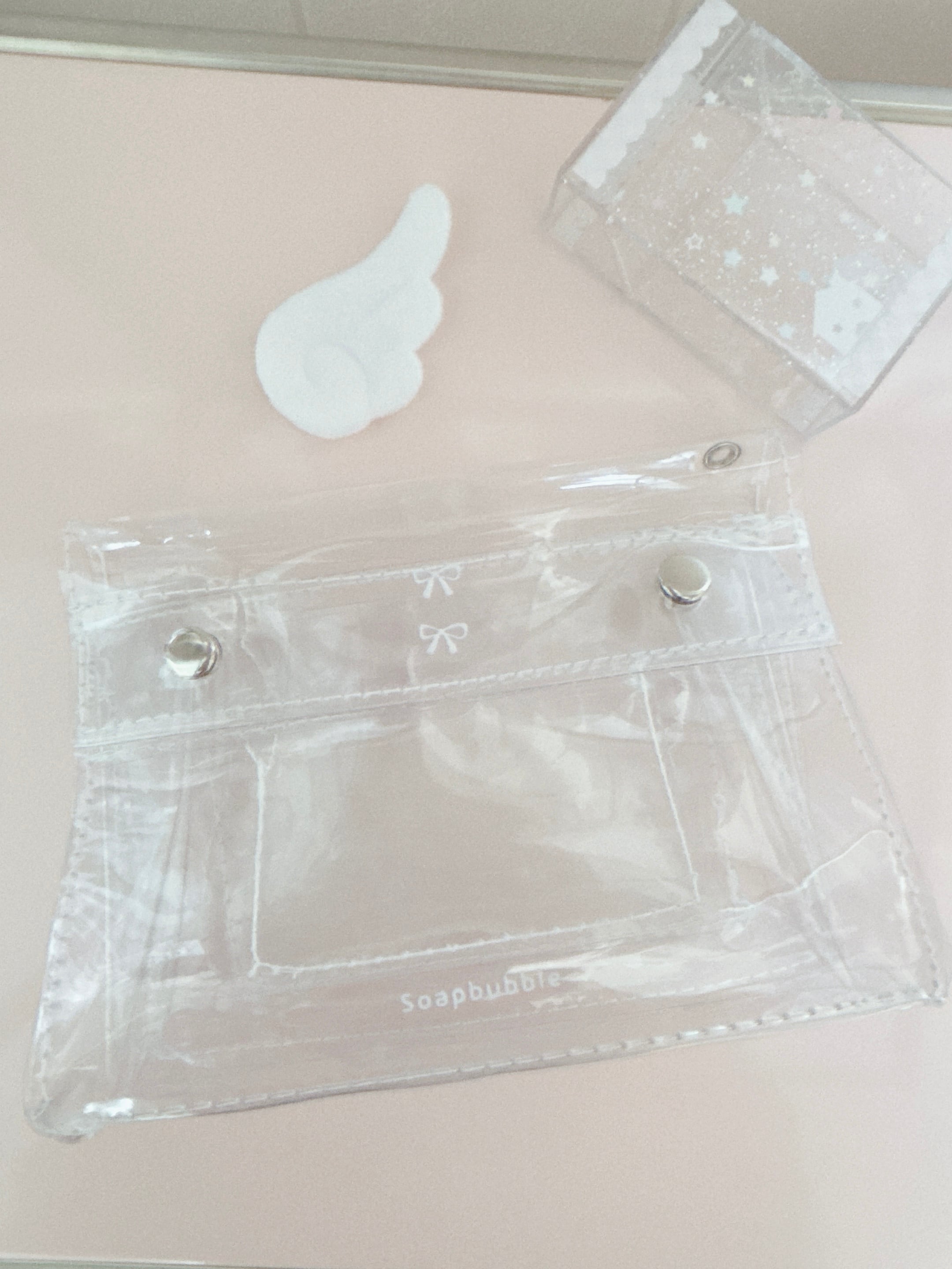 リボンのワンポイントが可愛いシンプル&大容量のクリアペンケースです⋈