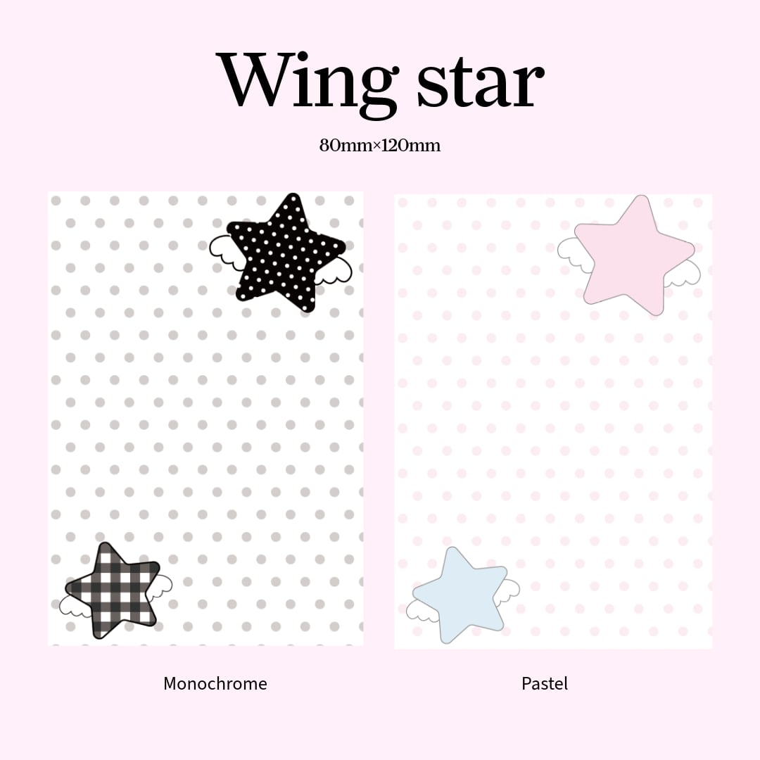 天使の羽がついた星がアクセントの、ドット柄が可愛い手帳デコ用背景シールです。