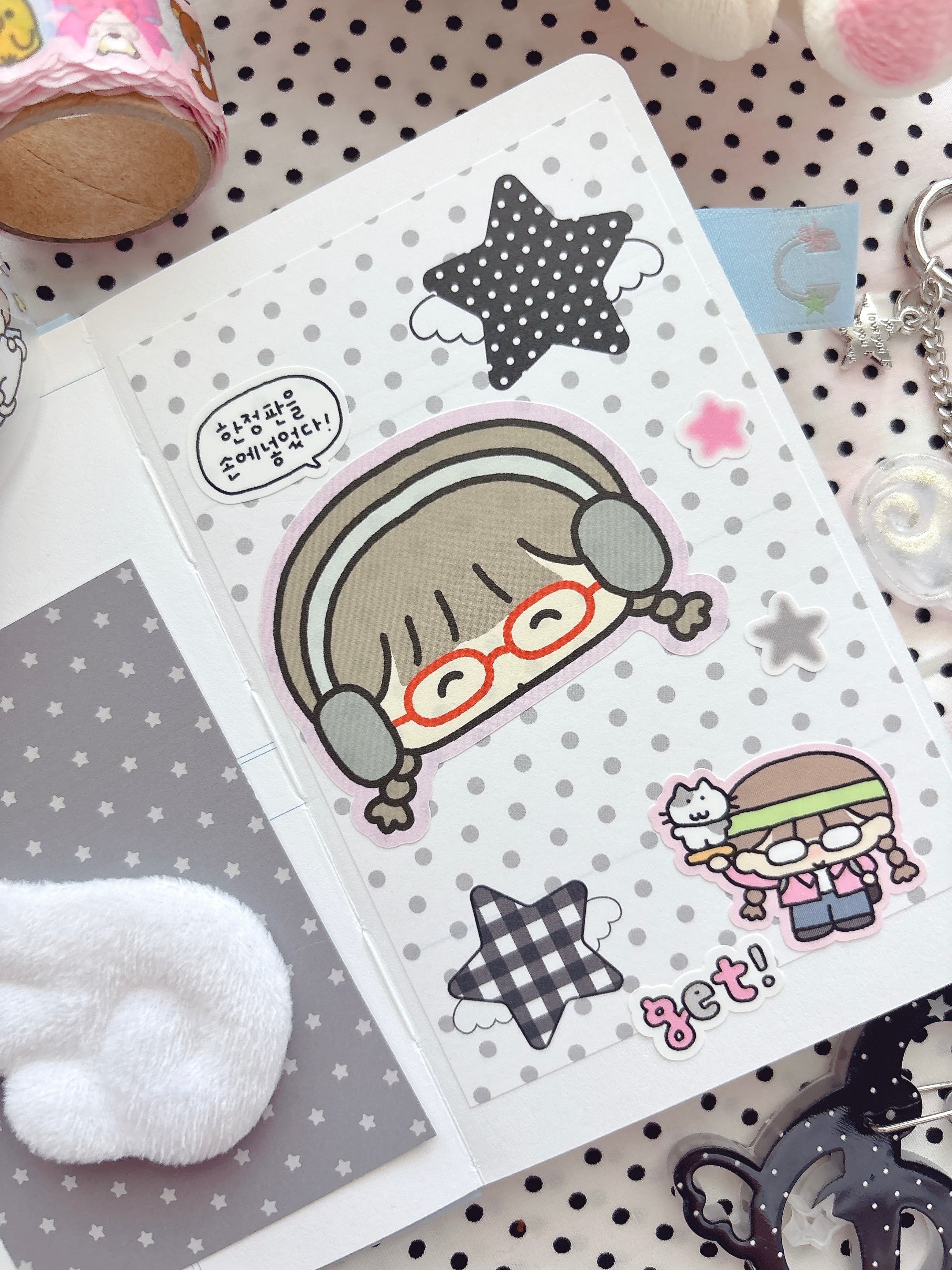 手持ちの手帳やノートに貼って、簡単に可愛い手帳デコが楽しめる背景シールです。