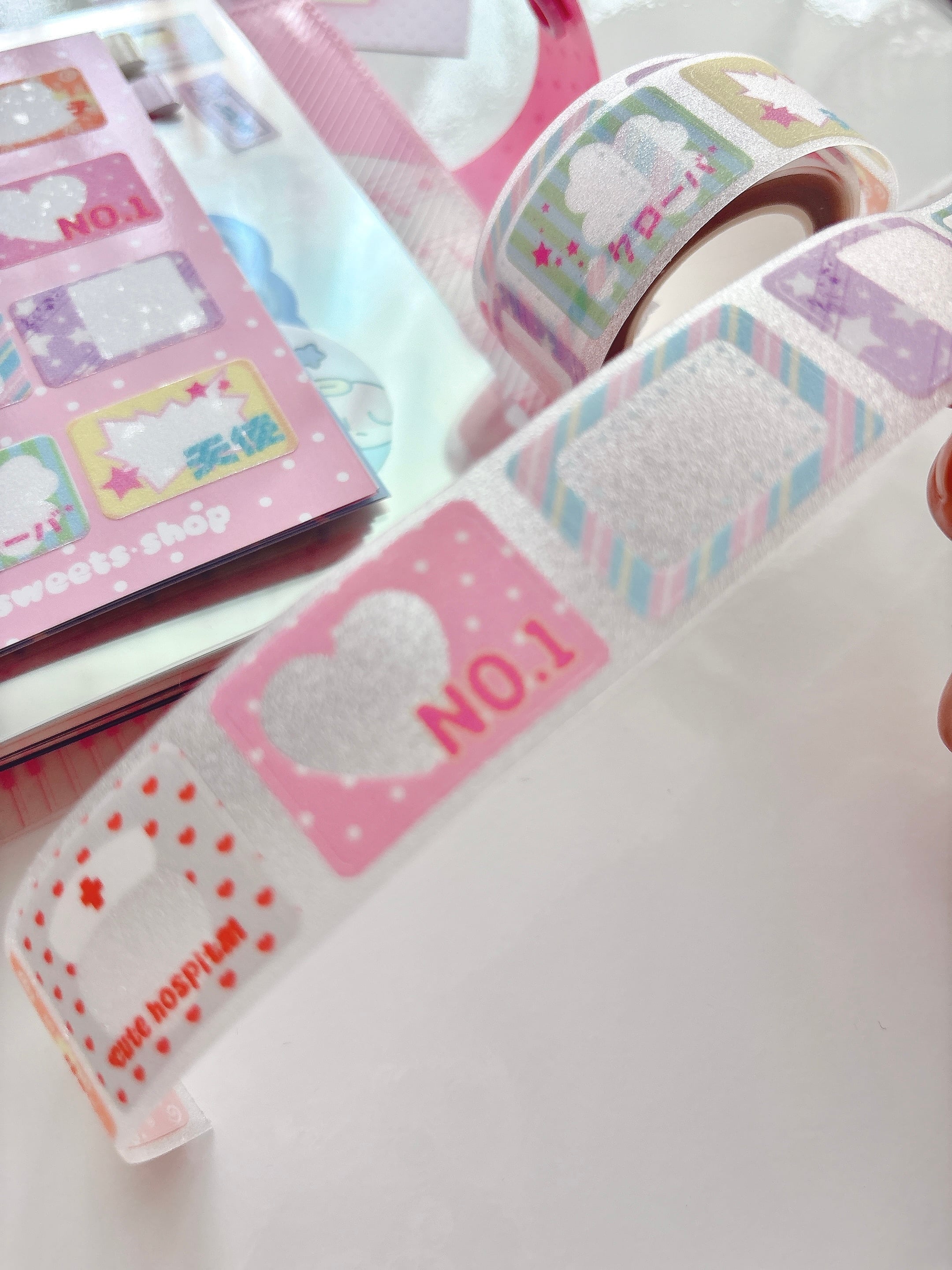 プリクラのようなデザインのフレームステッカー(7種類の絵柄)がロールステッカーになっているので、たくさん使用できるお得なアイテムです!