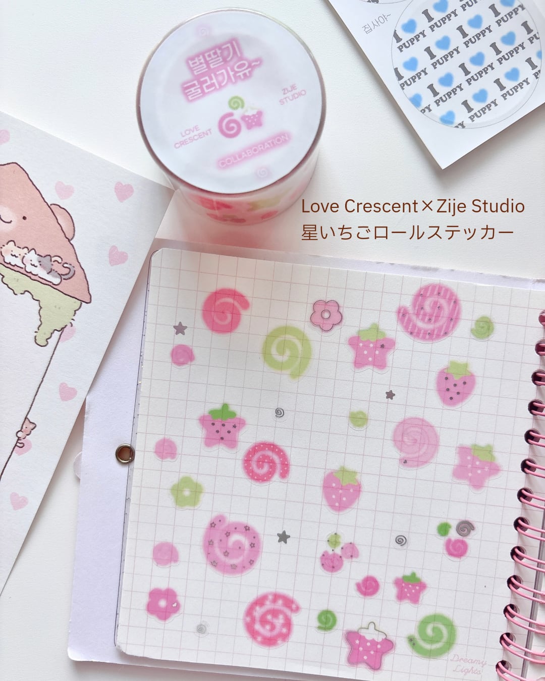 【韓国文房具】┆Zije Studio┆Love Crescent×Zije Studio 星いちごロールステッカー※送料570円商品