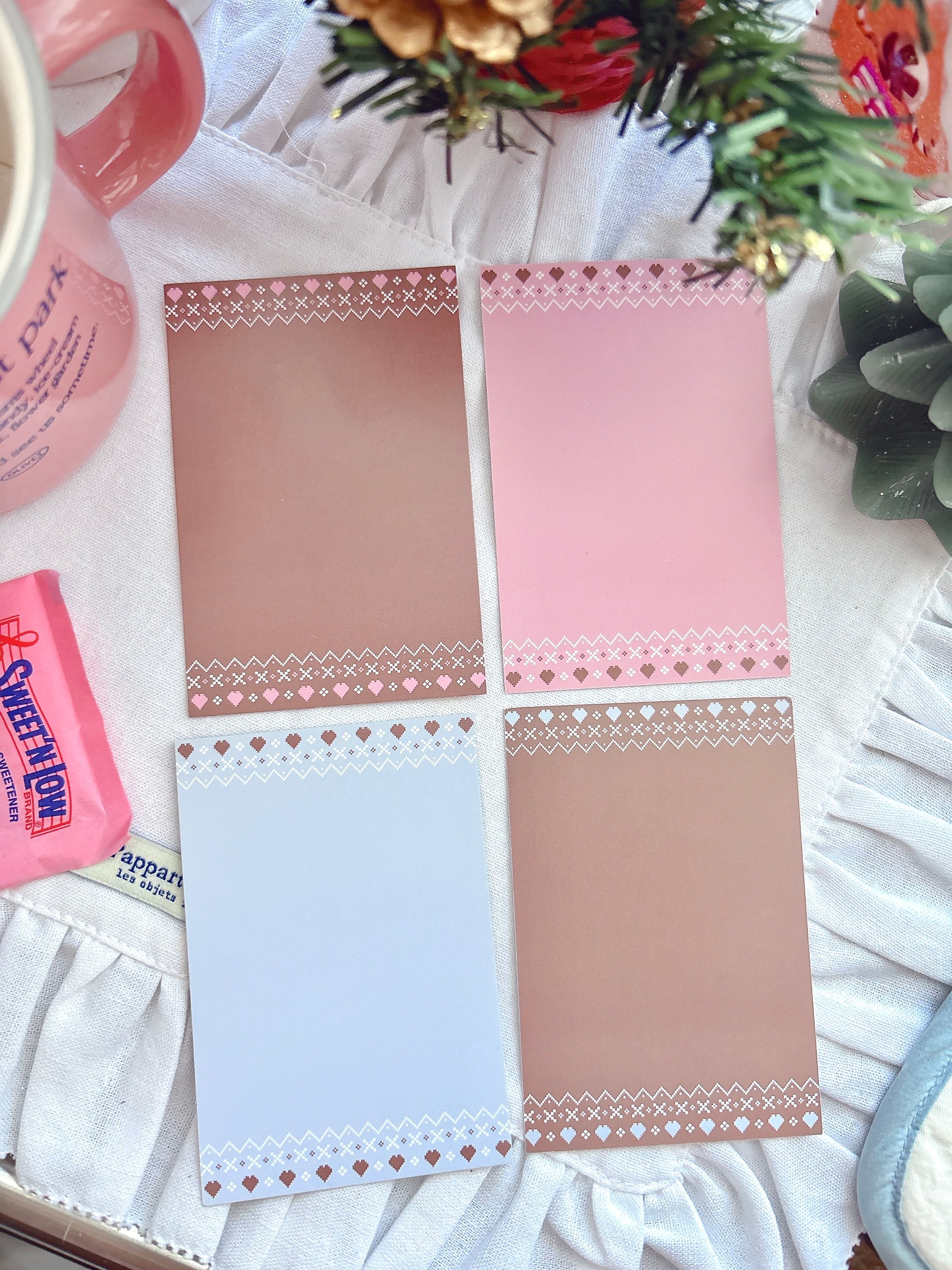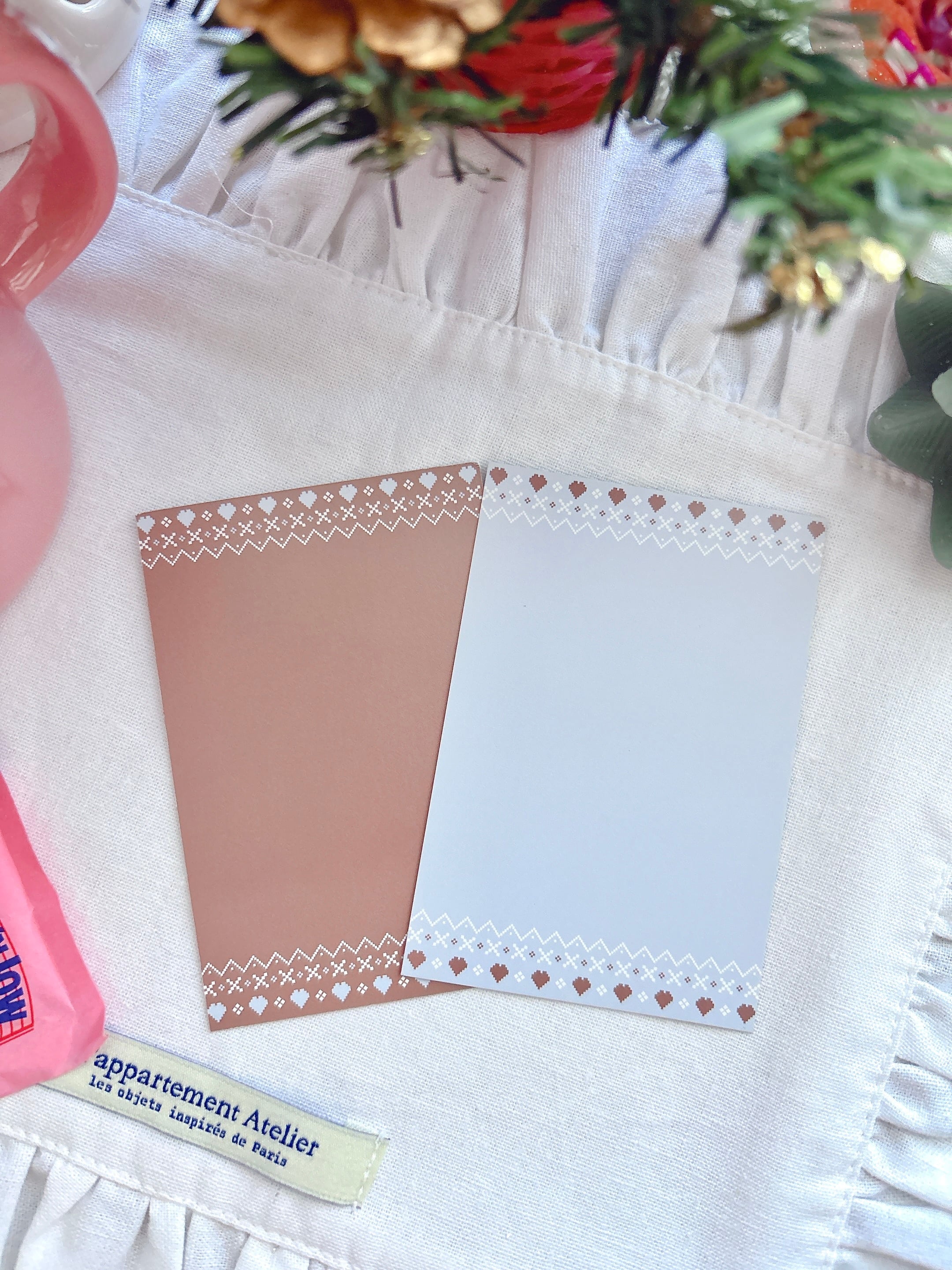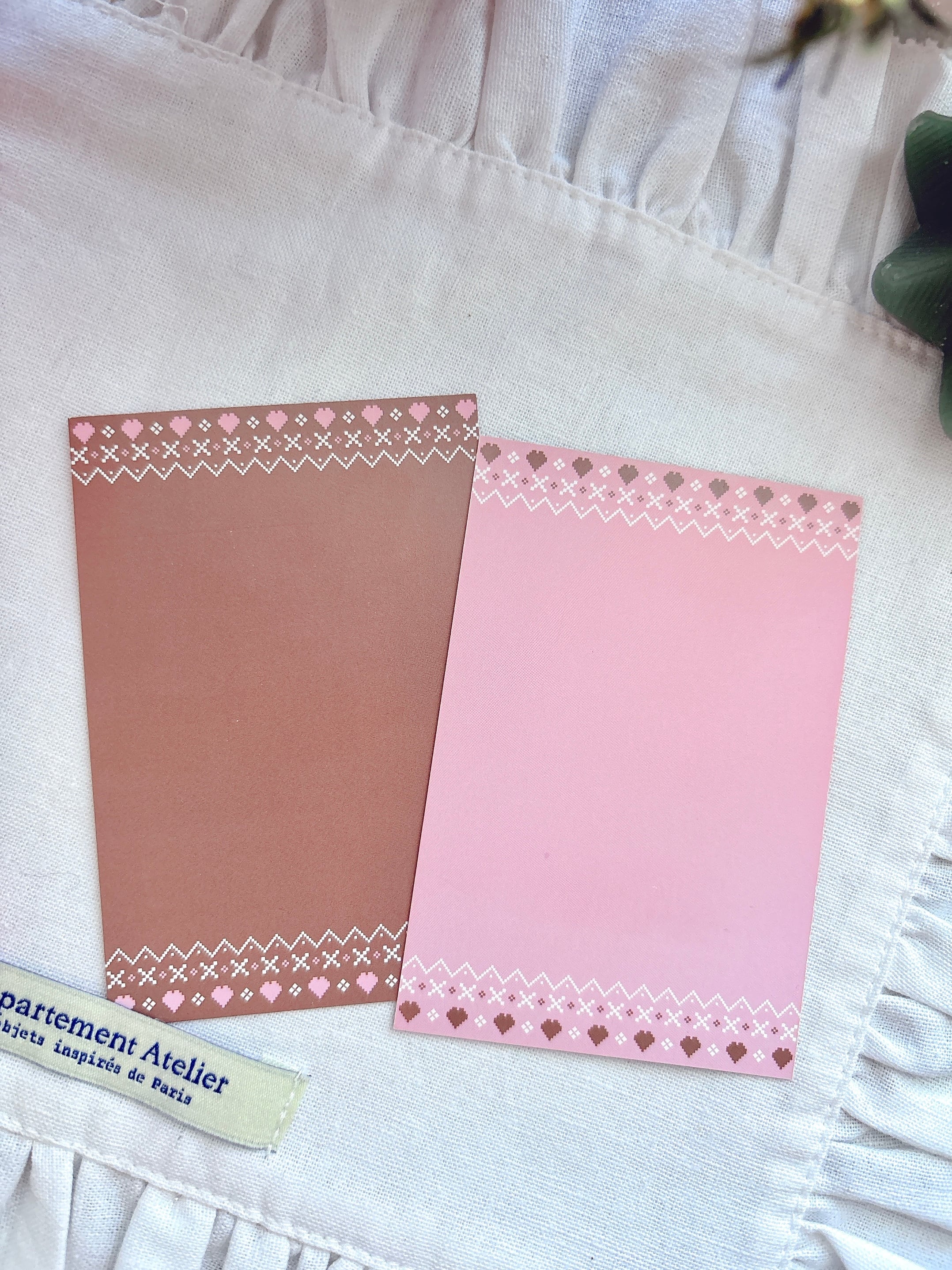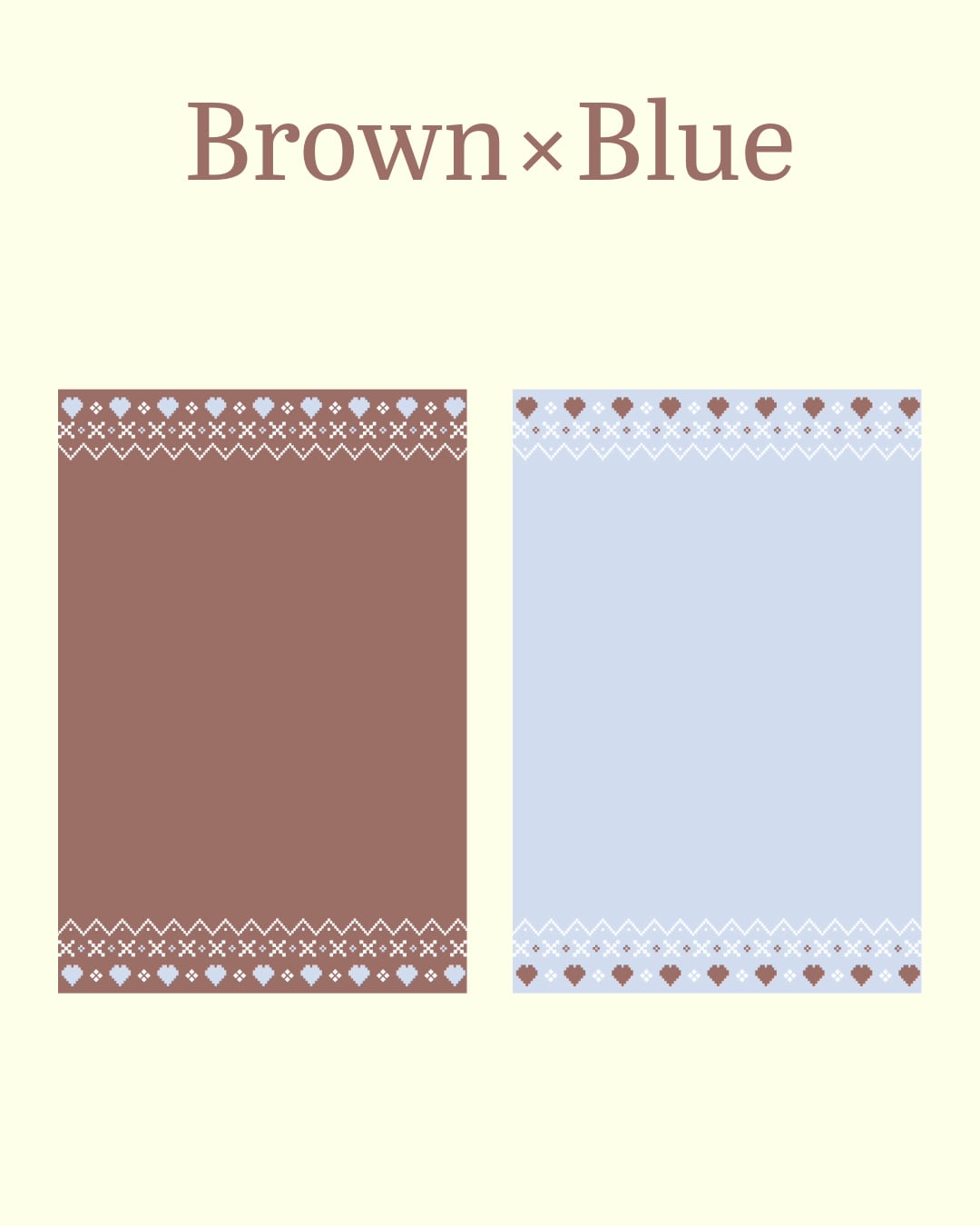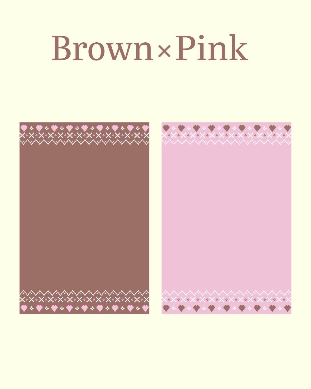 ココアブラウン×ピンク、ココアブラウン×ブルーの組み合わせがほっこりとかわいいジャガードニット柄トレカ台紙です。