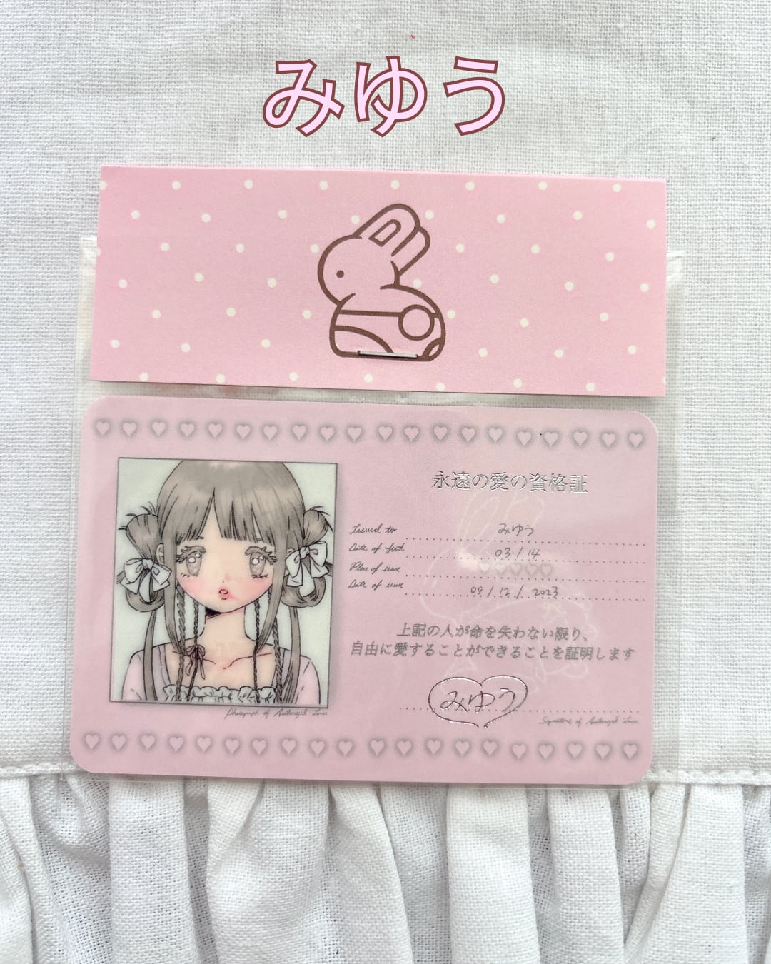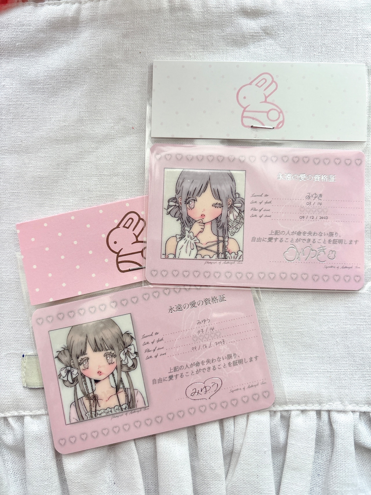韓国の作家rosemellyclub様のみゆう&みゆきちゃんのIDカードタイプのイラストカードです。