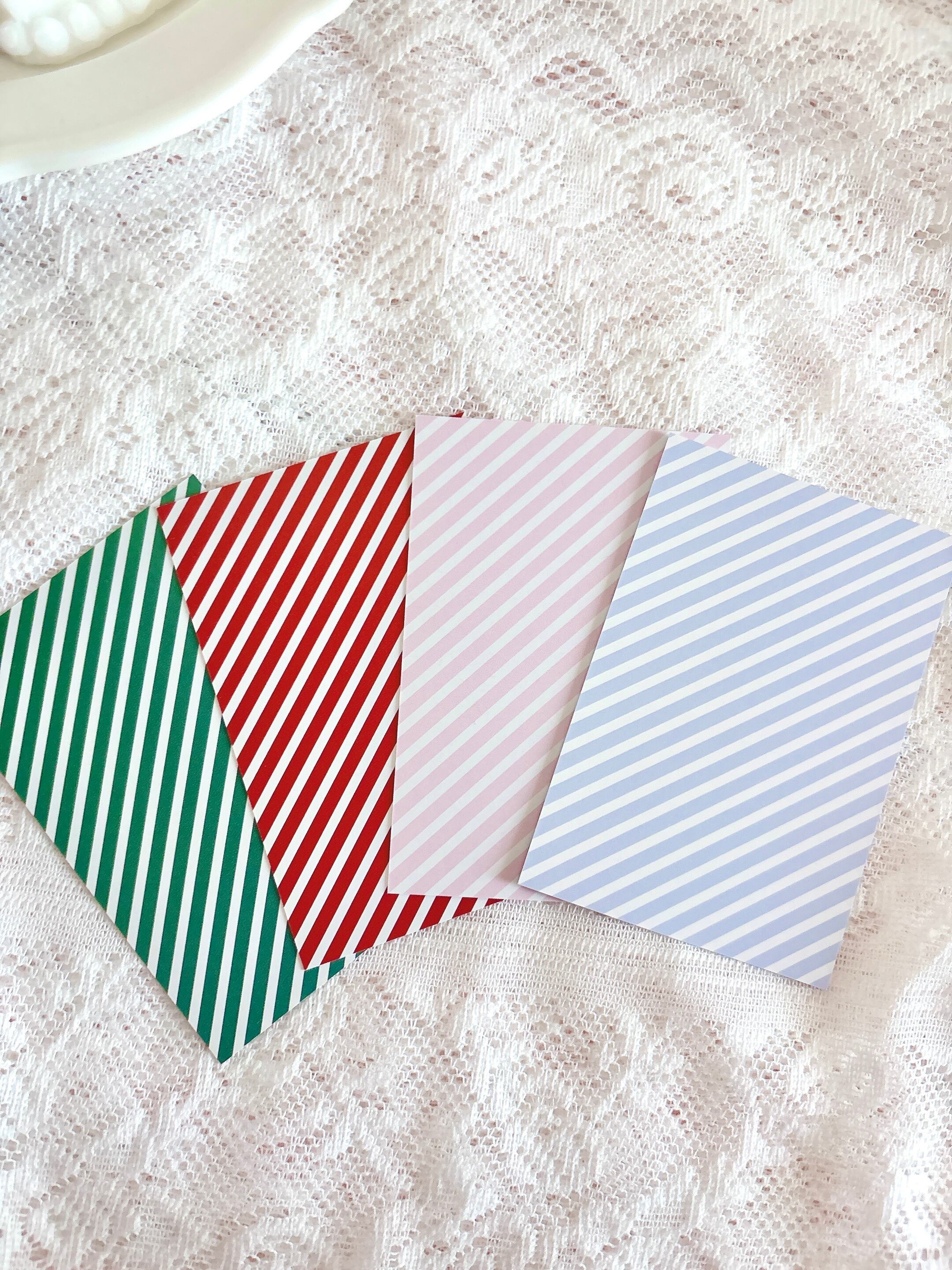 細めの斜めストライプが可愛いクリスマスやお菓子っぽい雰囲気にぴったりなトレカ台紙セットです。