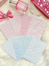 のギャルっぽさ満点の4種類の柄で、それぞれ裏と表でピンクとブルーのカラーとなっています。各カラー16枚ずつのセットとなります。